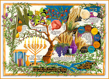 Shivat HaMinim piece shown with hand-cut border |